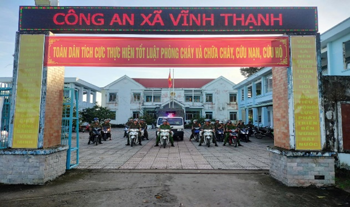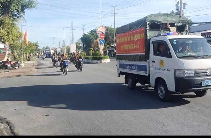 Lực lượng Công an xã xã Vĩnh Thạnh ra quân diễu hành, cổ động trên các tuyến đường trên địa bàn xã