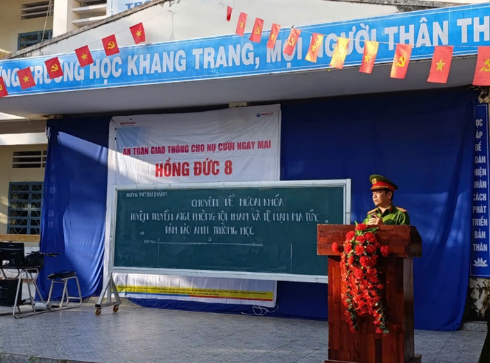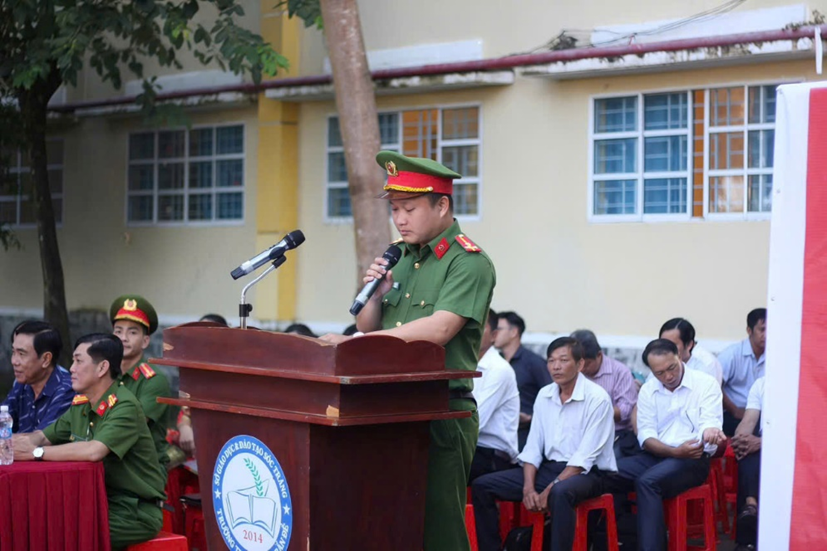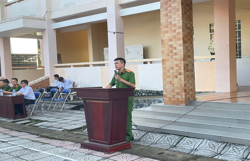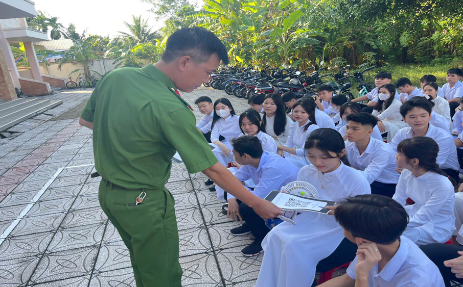 Cán bộ Công an xã Trần Đề tuyên truyền tại Trường THCS và THPT Trần Đề