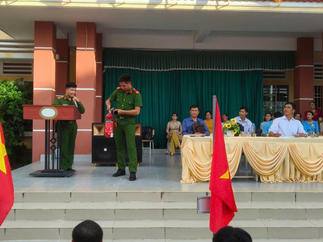 Công an xã Long Hưng phối hợp với các trường học tuyên truyền kỹ năng phòng cháy, chữa cháy và an toàn khi tham gia giao thông cho giáo viên, học sinh.