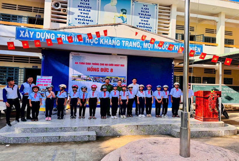 Công an phường Đại Thành phối hợp với HEAD Honda Hồng Đức trao tặng mũ bảo hiểm đạt chuẩn cho học sinh, lan tỏa thông điệp “Đội mũ bảo hiểm đúng cách, đúng quy định, đúng lứa tuổi”.
