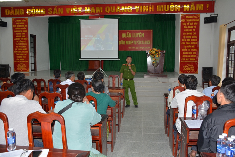 Tại buổi tập huấn, lực lượng chuyên môn đã phổ biến, làm rõ các quy định của pháp luật về công tác PCCC và CNCH, gắn với trách nhiệm cụ thể của từng cơ quan, tổ chức, cá nhân có liên quan; đồng thời phân tích các nguyên nhân thường dẫn đến cháy, nổ và hướng dẫn biện pháp xử lý phù hợp. Các đại biểu còn được trang bị kiến thức cơ bản về công tác PCCC tại khu dân cư, kỹ năng phát hiện sớm và xử lý kịp thời các sự cố cháy, nổ, đặc biệt tại hộ gia đình và cơ sở sản xuất, kinh doanh. Sau phần lý thuyết, các đại biểu được trực tiếp thực hành, trải nghiệm kỹ năng sử dụng phương tiện, thiết bị chữa cháy ban đầu và kỹ năng cứu nạn, cứu hộ trong các tình huống giả định, góp phần nâng cao khả năng ứng phó khi sự cố xảy ra.
