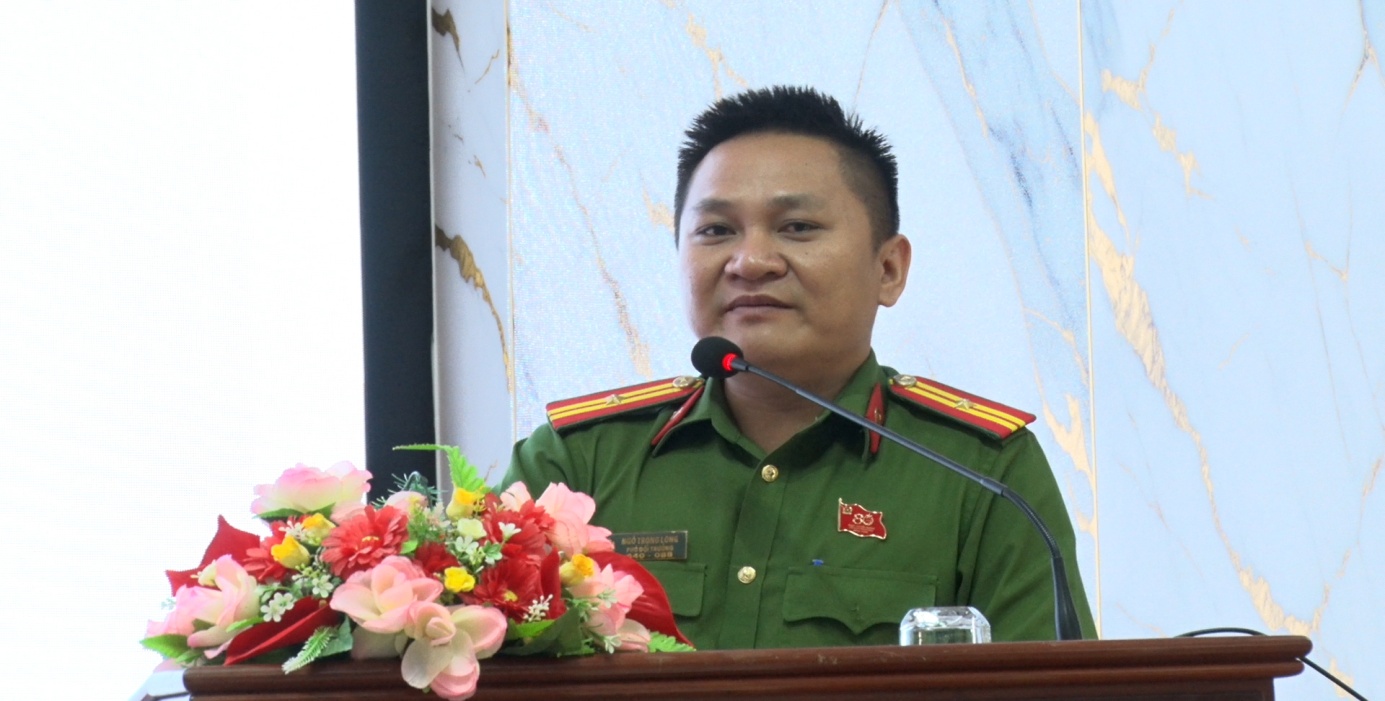 Thiếu tá Ngô Trọng Long, Phó Đội trưởng, Phòng Cảnh sát phòng cháy, chữa cháy và cứu nạn, cứu hộ phổ biến quy định pháp luật liên quan đến trách nhiệm khai báo thông tin phòng cháy chữa cháy
