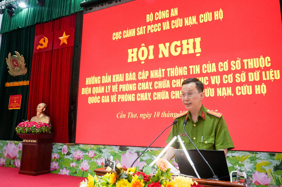 Sáng 10/11/2025, Cục Cảnh sát phòng cháy, chữa cháy và cứu nạn cứu hộ (PCCC và CNCH), Bộ Công an và Công an thành phố Cần Thơ tổ chức Hội nghị hướng dẫn khai báo, cập nhật thông tin của cơ sở thuộc diện quản lý về phòng cháy, chữa cháy phục vụ cơ sở dữ liệu quốc gia về phòng cháy, chữa cháy và cứu nạn, cứu hộ trên địa bàn thành phố Cần Thơ. Hội nghị được tổ chức theo hình thức trực tiếp kết hợp trực tuyến, kết nối giữa 3 điểm cầu trong Công an thành phố. Tham dự có lãnh đạo phòng, báo cáo viên thuộc Cục Cảnh sát PCCC và CNCH; lãnh đạo, cán bộ, chiến sĩ Phòng Cảnh sát PCCC và CNCH Công an thành phố chỉ huy, cán bộ phụ trách công tác PCCC và CNCH Công an các xã, phường với 200 đại biểu tham dự.