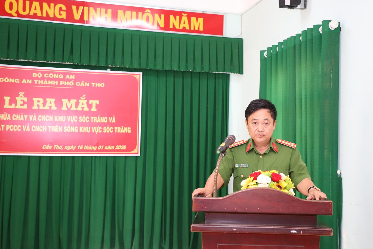 Theo đó, thực hiện Quyết định của Công an thành phố Cần Thơ về tổ chức bộ máy của Phòng Cảnh sát PCCC và CNCH, việc thành lập và chính thức ra mắt Đội Chữa cháy và CNCH khu vực Sóc Trăng và Đội Cảnh sát PCCC và CNCH trên sông khu vực Sóc Trăng không chỉ là yêu cầu về tổ chức, mà còn là đòi hỏi tất yếu từ thực tiễn phát triển kinh tế – xã hội, đô thị hóa nhanh và yêu cầu bảo đảm an toàn tính mạng, tài sản của Nhân dân trong tình hình mới, nhất là đối với địa bàn có đặc thù sông nước, giao thông thủy phức tạp.