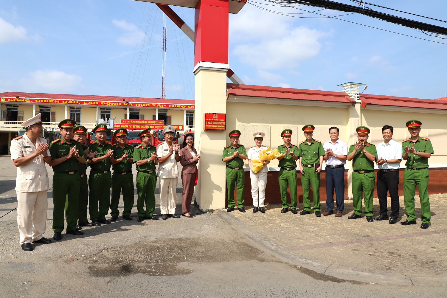 Sau Lễ ra mắt, các đại biểu tham dự đã thực hiện nghi thức gắn biển, tham quan trụ sở, phương tiện và các trang thiết bị chữa cháy.
