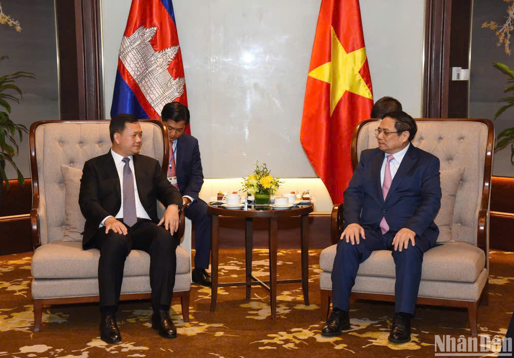 Thủ tướng Chính phủ Phạm Minh Chính hội đàm với Thủ tướng Chính phủ Hoàng gia Campuchia Hun Manet tại Hà Nội, trong chuyến thăm chính thức đến Việt Nam vào tháng 12/2023 (Ảnh: Báo Nhân dân)