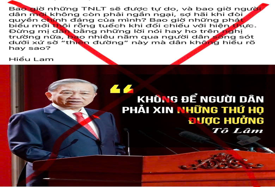 Ảnh: Đối tượng cố tình cắt xén ngữ cảnh và bóp méo ý nghĩa phát biểu của Tổng Bí thư Tô Lâm về việc xây dựng Nhà nước pháp quyền