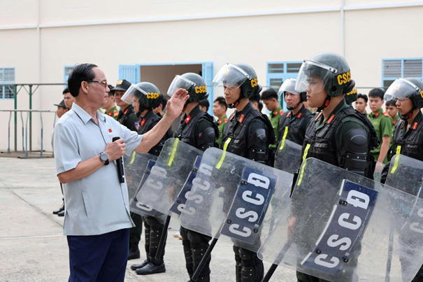 Ảnh: Phó Chủ tịch Quốc hội Trần Quang Phương kiểm tra công tác sẵn sàng chiến đấu trước thềm cuộc bầu cử đại biểu Quốc hội khóa XVI và đại biểu Hội đồng nhân dân các cấp nhiệm kỳ 2026 - 2031 tại Công an TP Cần Thơ.