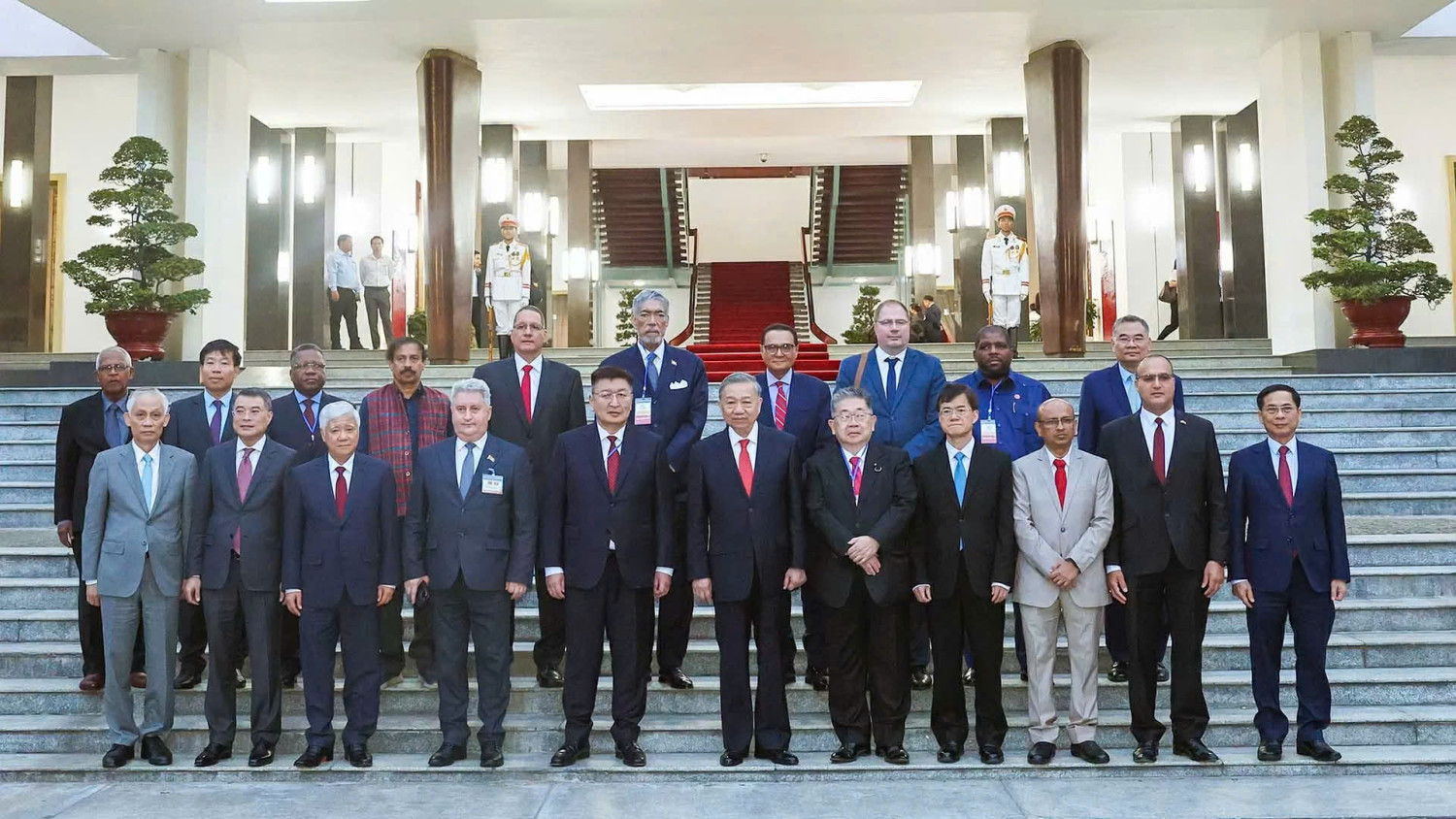 Đồng chí Tổng Bí thư Tô Lâm tiếp Trưởng đoàn chính đảng các nước nhân dịp sang Việt Nam dự Lễ kỷ niệm 50 năm Ngày Giải phóng miền Nam, thống nhất đất nước, ngày 29/4/2025 tại Hội trường Thống Nhất, Thành phố Hồ Chí Minh