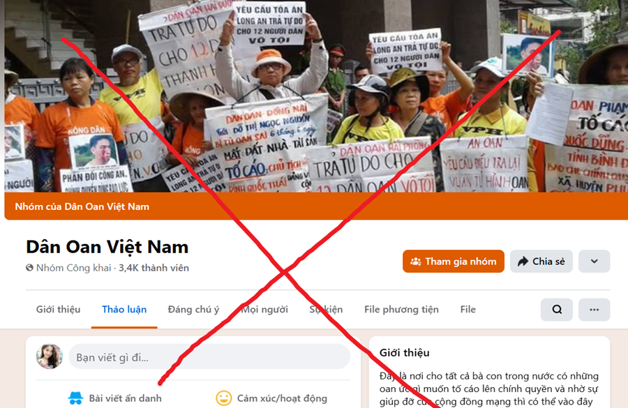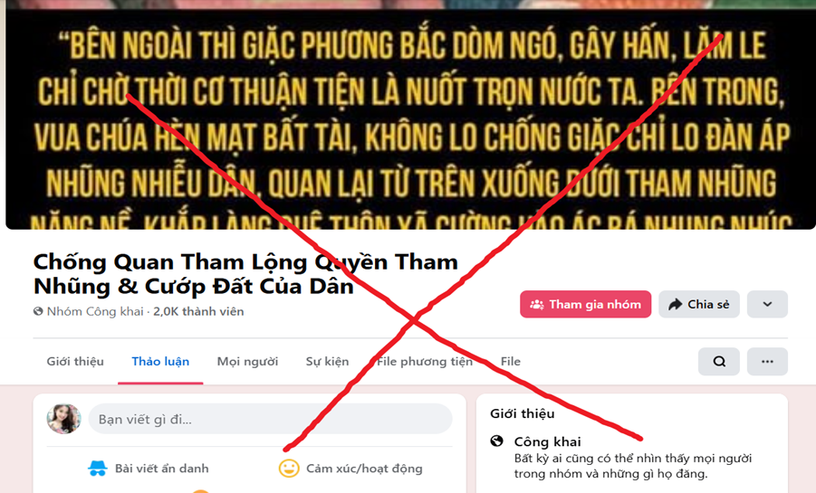 Hoặc lợi dụng lợi ích cá nhân của một bộ phận người dân trong giải quyết vấn đề đất đai, nhà ở, các chính sách xã hội… để tạo lập các hội nhóm như: “Dân oan”, “Nổi lòng dân oan”, “dân oan Việt Nam”... để kích động, lôi kéo Nhân dân tham gia vào các hoạt động gây rối, mất an ninh trên mạng xã hội, từ đó lan truyền, hiện thực hóa trên thực địa. Lợi dụng “khoảng trống thông tin” để tấn công vào sự hiếu kỳ của người dân, phát tán ồ ạt những tin, bài xuyên tạc, bóp méo sự thật, hướng lái dư luận qua những tiêu đề “giật gân”, “câu view”. Để ngụy trang cho bản chất phản động, chống đối của hội, nhóm, thường đăng tải, chia sẻ lồng ghép nhiều bài viết có nội dung tích cực xen lẫn tiêu cực trong nhóm. Tinh vi hơn là lập các trang mạng, tài khoản mạng xã hội giả mạo các cơ quan Nhà nước, các đồng chí lãnh đạo, các cá nhân có ảnh hưởng… để đăng tải thông tin phản động, lợi dụng sự thiếu hiểu biết của một bộ phận người dân để kích động tham gia phát tán thông tin xấu độc.