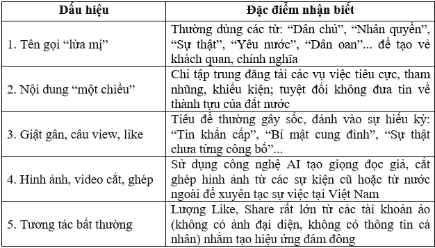 Công an thành phố khuyến cáo mỗi người dân, mỗi cán bộ, đảng viên, đặc biệt là thanh thiếu niên khi sử dụng, tham gia mạng xã hội cần hết sức cảnh giác, nhận diện rõ phương thức, thủ đoạn của các thế lực thù địch, tổ chức phản động để tránh bị lôi kéo vào các hội, nhóm của các tổ chức, cá nhân phản động, chống đối. Cần thận trọng khi sử dụng hình ảnh, nội dung tạo dựng bằng công nghệ AI; không đăng tải, chia sẻ thông tin sai sự thật, xuyên tạc, gây ảnh hưởng đến uy tín của tổ chức, cá nhân. Thường xuyên tuyên truyền, cảnh báo cho người thân, gia đình, bạn bè và cộng đồng nhận diện và chủ động đấu tranh với các hội, nhóm do đối tượng phản động, chống đối tạo lập, điều hành; tích cực tố cáo với Cơ quan chức năng các hành vi vi phạm để có biện pháp đấu tranh, ngăn chặn kịp thời. Một số dấu hiệu nhận biết trang, hội nhóm chống đối trên không gian mạng hiện nay: