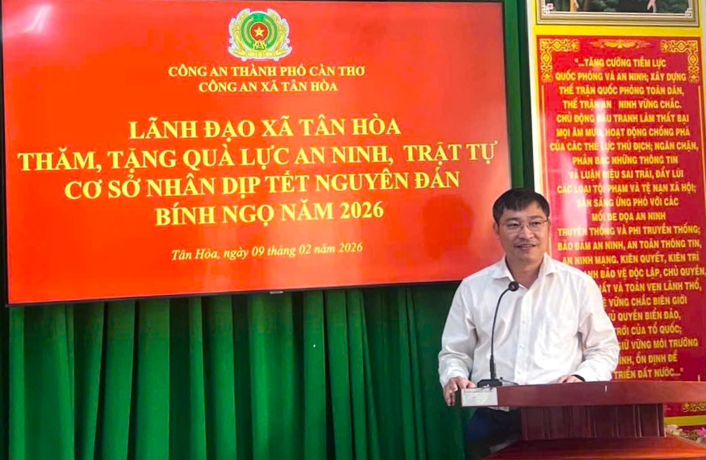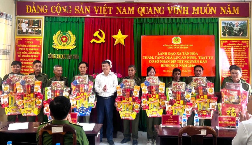 Trong không khí ấm áp những ngày đầu Xuân mới Bính Ngọ 2026, ngày 09/02/2026, Công an xã Tân Hòa, thành phố Cần Thơ tổ chức chúc Tết, tặng quà lực lượng tham gia bảo vệ an ninh trật tự ở cơ sở trên địa bàn. Dự buổi chúc Tết có đồng chí Lê Hoàng Xuyên, Bí thư Đảng ủy xã; đồng chí Bùi Công Mến, Phó chủ tịch thường trực Ủy ban nhân dân xã; Thượng tá Trương Thanh Hiếu, Trưởng Công an xã.