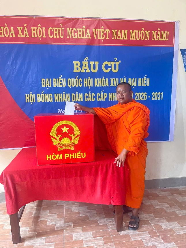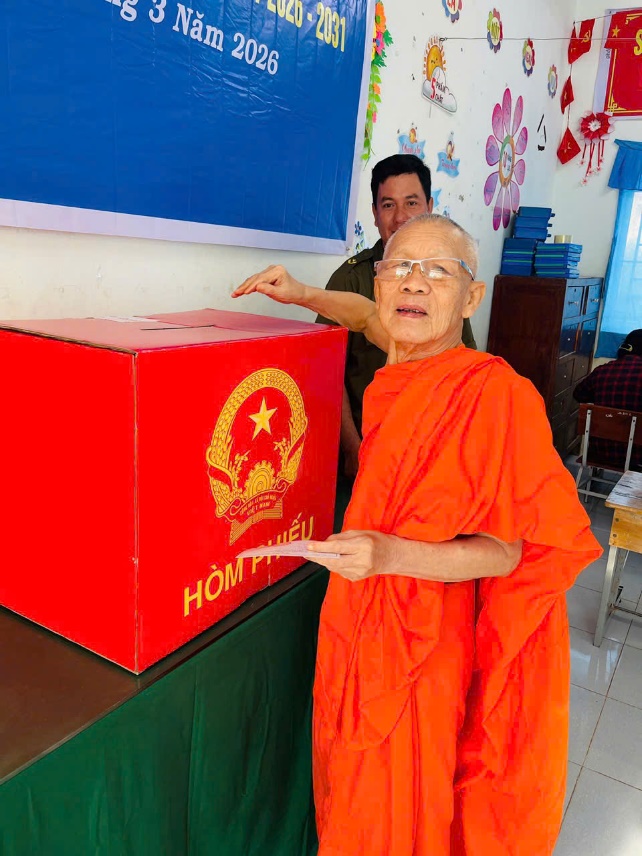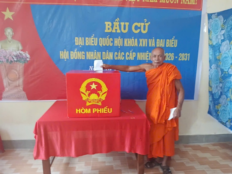 Một số chức sắc trong Phật giáo Nam tông Khmer trên địa bàn xã thực hiện quyền bầu cử
