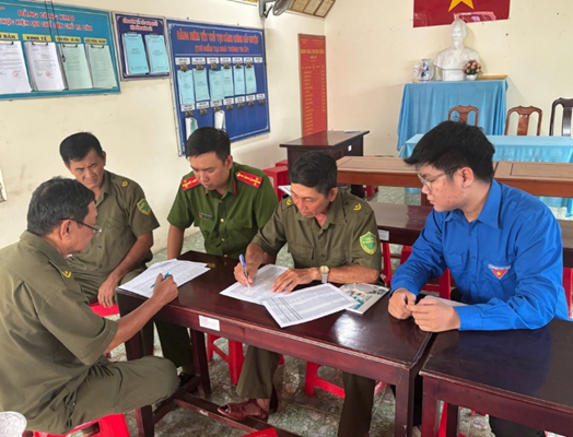 Cảnh sát khu vực hỗ trợ người dân tích hợp thẻ Bảo hiểm y tế