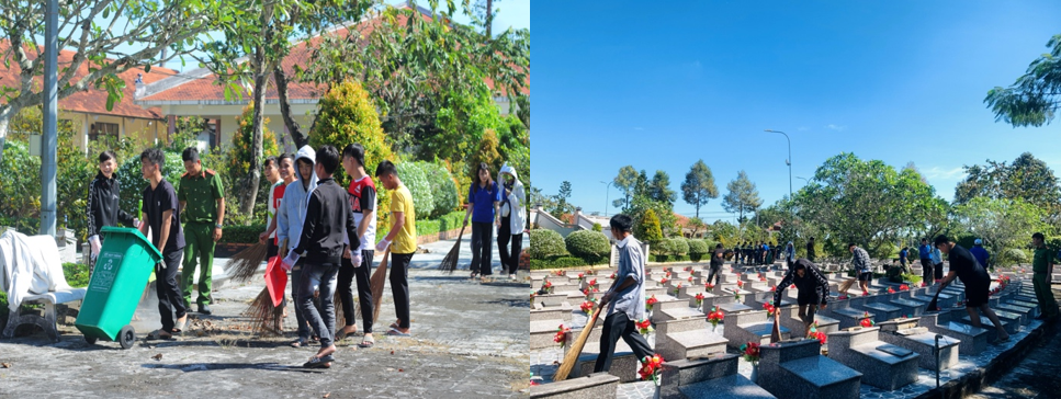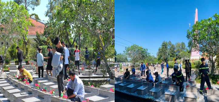 Cũng trong sáng cùng ngày, hơn 50 đồng chí thuộc các lực lượng Chi đoàn Công an, Đoàn Thanh niên phường, Chi đoàn Viện kiểm sát Nhân dân khu vực 4 và Chi đoàn Cảnh sát Phòng cháy, chữa cháy và cứu nạn, cứu hộ khu vực 7 cùng các em thanh thiếu niên đã đến nghĩa trang Liệt sĩ Thốt Nốt. Tại đây, các đoàn viên, thanh thiếu niên đã quét dọn, cắt cỏ, thu gom rác, lau dọn, vệ sinh và thắp hương từng phần mộ của các Anh hùng, liệt sĩ, bất chấp thời tiết nắng nóng. Hoạt động này không chỉ góp phần phòng, chống tội phạm và nâng cao nhận thức pháp luật cho thanh thiếu niên mà còn tăng cường giáo dục truyền thống cách mạng, phát huy lòng yêu nước, tự hào dân tộc và truyền thống uống nước nhớ nguồn trong đoàn viên, thanh thiếu niên đối với các Anh hùng, liệt sĩ đã hy sinh vì hòa bình, độc lập, tự do và thống nhất của dân tộc./.