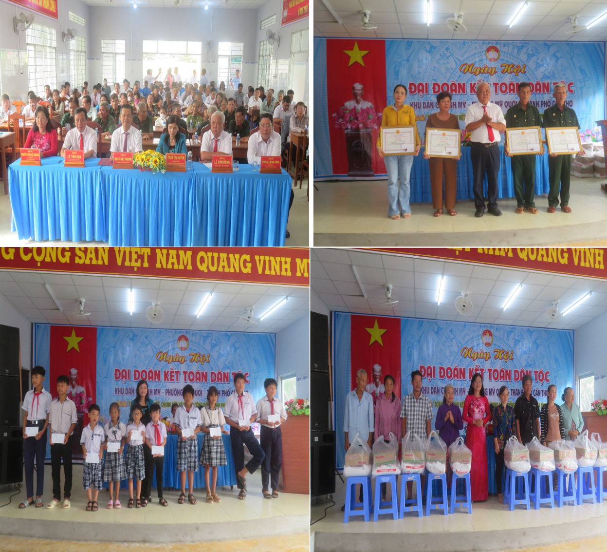 Tại phường Mỹ Quới, Ngày hội diễn ra tại khu vực Vĩnh Mỹ với các hoạt động: báo cáo kết quả phong trào năm 2025, phát động thi đua năm 2026; trao giấy khen cho tập thể và cá nhân tiêu biểu; trao học bổng và quà cho học sinh, hộ nghèo, cận nghèo, góp phần củng cố khối đại đoàn kết và phong trào toàn dân bảo vệ an ninh Tổ quốc.