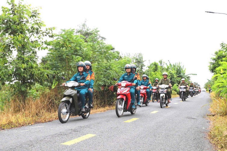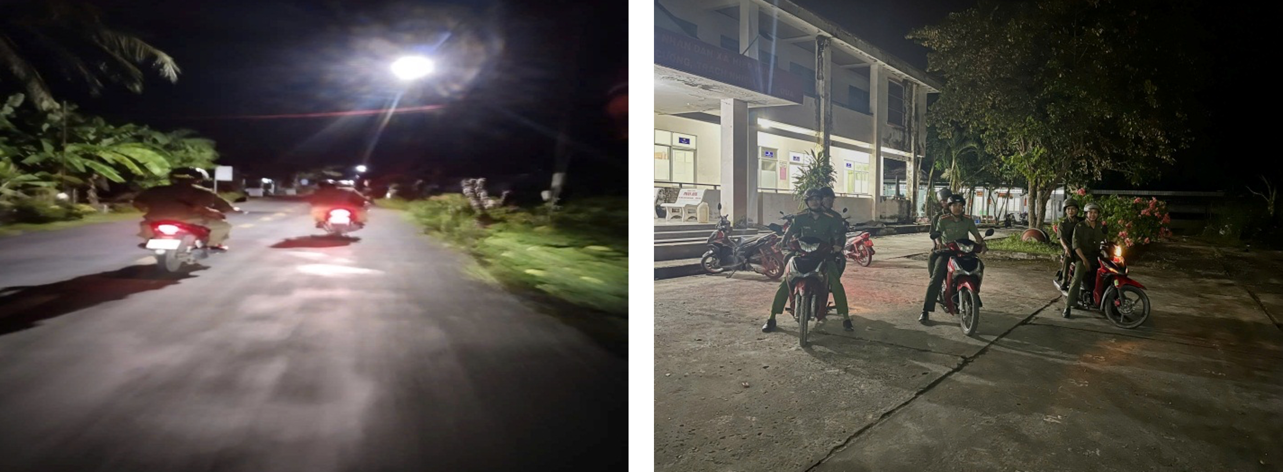 Công an xã Trường Long phối hợp với lực lượng Quân sự tuần tra trên các tuyến giao thông