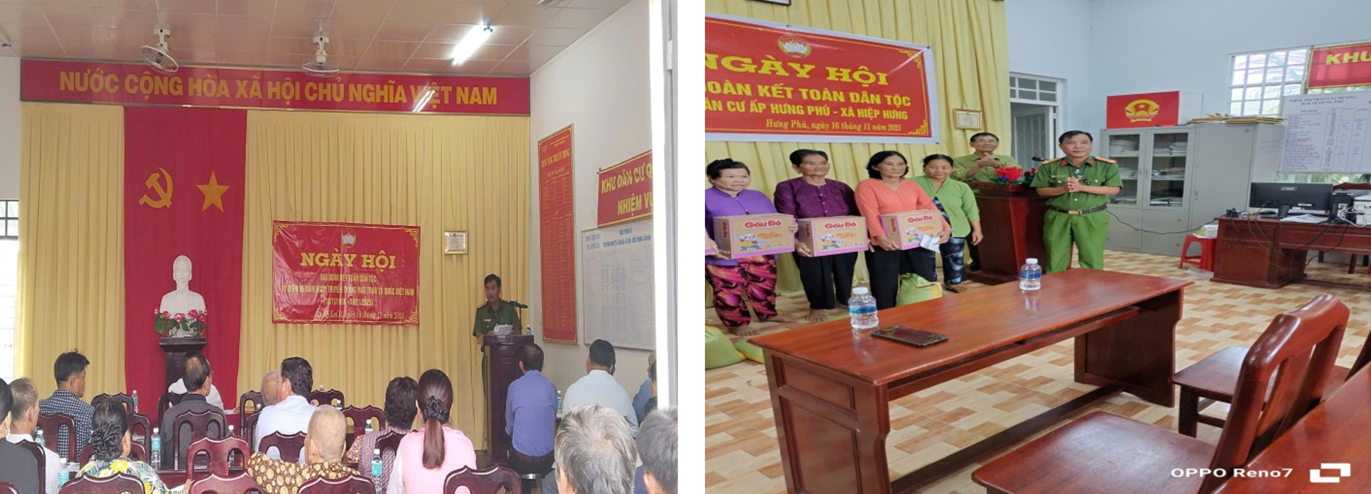 Tại xã Phú Hữu, Công an xã phối hợp Ban Chỉ huy Quân sự xã bảo đảm an ninh, trật tự trước, trong và sau Ngày hội, đồng thời hỗ trợ các hoạt động giao lưu văn hóa, văn nghệ, trò chơi dân gian và trao quà cho hộ nghèo, hộ chính sách, tăng cường mối gắn bó giữa Nhân dân và lực lượng Công an.