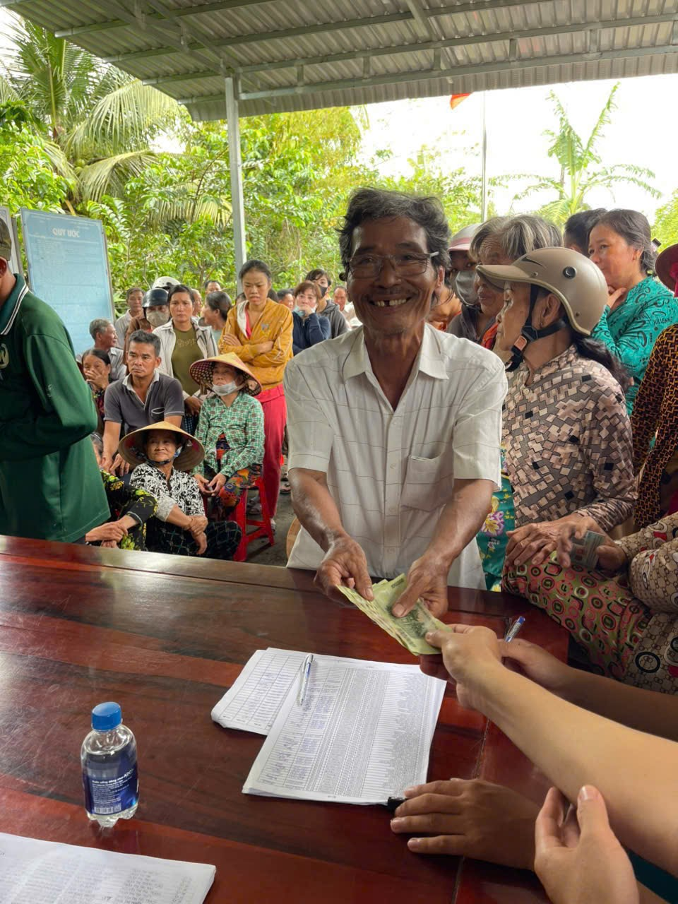 Người dân phấn khởi nhận quà nhân dịp Tết Độc lập tại xã Tân Hòa