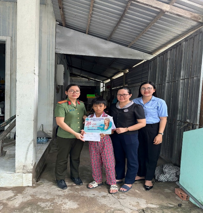 Bên cạnh đó, Chi hội Phụ nữ Công an xã Tân Phước Hưng phối hợp Hội Liên hiệp Phụ nữ xã thăm hỏi, tặng quà và động viên 01 trường hợp là có hoàn cảnh khó khăn và là nạn nhân trong 01 vụ việc xảy ra trên địa bàn xã. Ngoài ra, Chi hội Phụ nữ Công an xã Thạnh Quới phối hợp Hội Liên hiệp Phụ nữ xã thăm hỏi, động viên và hỗ trợ 01 trường hợp là người vừa chấp hành xong án phạt tù, hướng dẫn các thủ tục cần thiết, tuyên truyền pháp luật, giới thiệu chính sách vay vốn ưu đãi và hỗ trợ việc làm, giúp ổn định cuộc sống và hòa nhập cộng đồng. Các hoạt động này thể hiện tinh thần nhân văn, trách nhiệm xã hội, góp phần xây dựng môi trường an toàn, lành mạnh cho trẻ em và người dân.