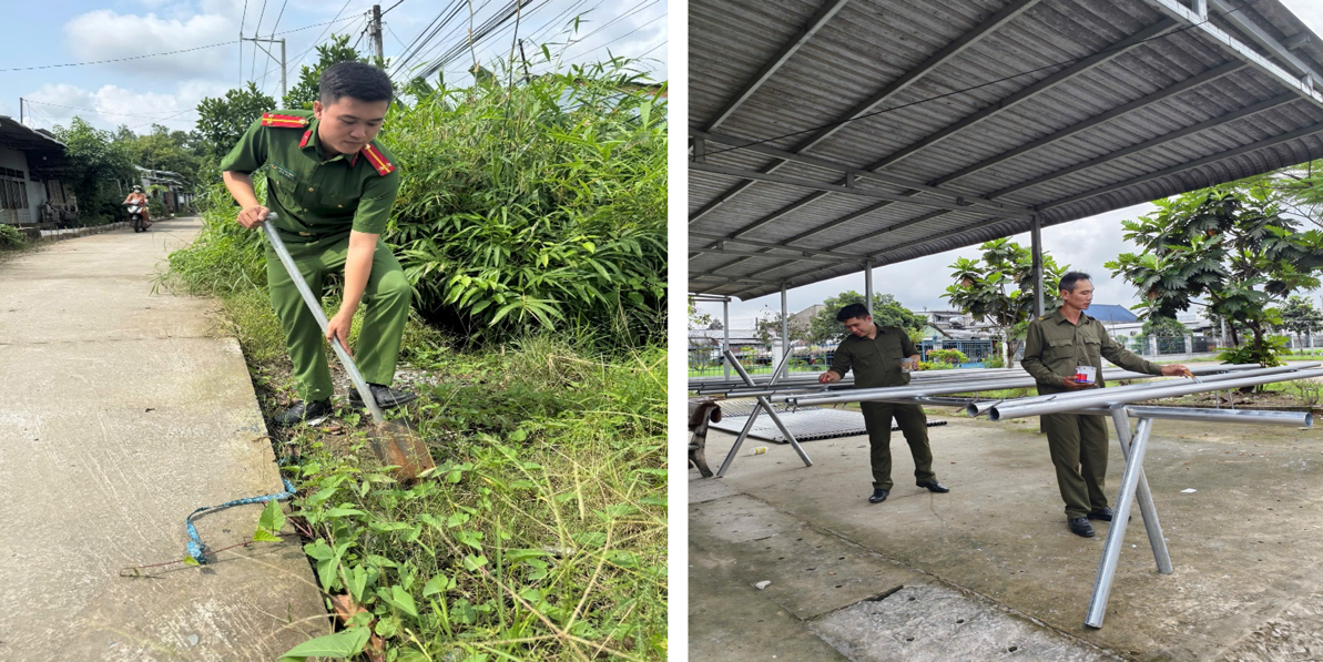 Về xây dựng cảnh quan môi trường xanh – sạch – đẹp, Chi đoàn Công an xã Phú Hữu phối hợp chi bộ ấp Phú Nghĩa và lực lượng bảo vệ an ninh, trật tự cơ sở thực hiện công trình “Tuyến đường sáng – xanh – sạch – đẹp” vào ngày 10/11/2025. Lực lượng tham gia đã tiến hành dọn vệ sinh, phát quang, đào hố và lắp đặt, sơn các trụ đèn chiếu sáng dọc tuyến lộ nông thôn. Hoạt động góp phần cải thiện cảnh quan môi trường, nâng cao chất lượng cuộc sống người dân và phát huy tinh thần xung kích, trách nhiệm của đoàn viên thanh niên.