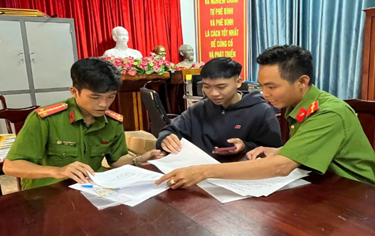 Cán bộ Công an xã Vĩnh Thạnh hướng dẫn Thanh niên làm hồ sơ tuyển Công an nhân dân