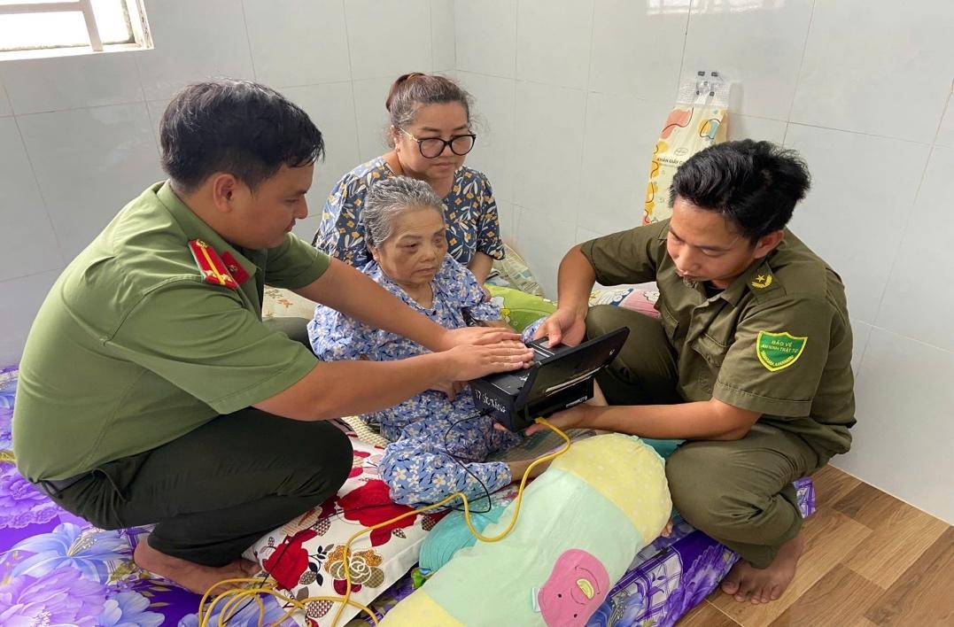 Cán bộ, chiến sĩ Công an xã Thới An Hội đến tận nhà thực hiện cấp căn cước cho người cao tuổi, người bênh tật, có hoàn cảnh đi lại khó khăn.