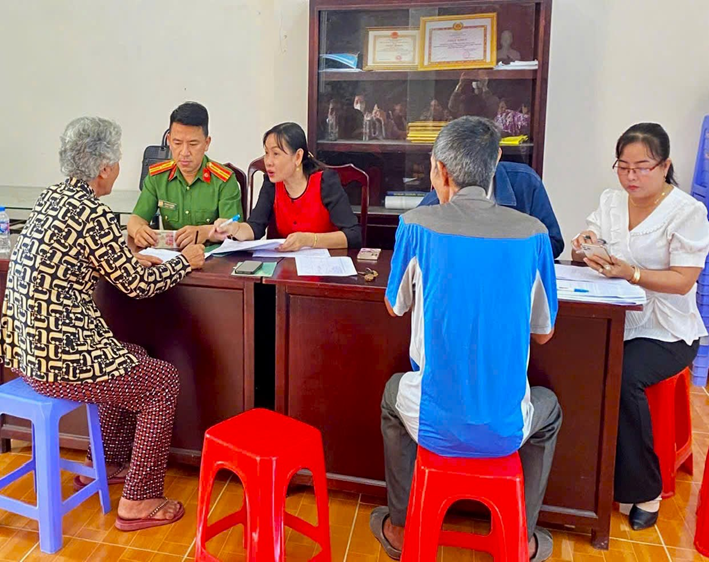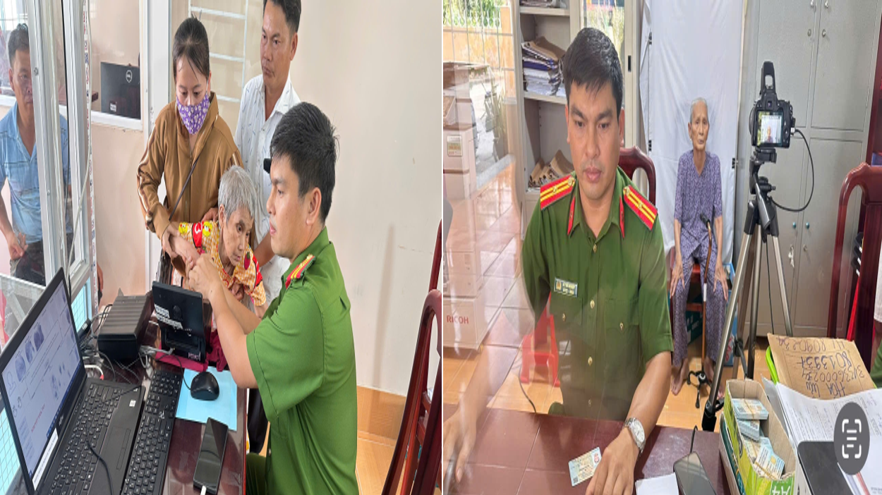 Cán bộ Công an xã Hỏa Lựu tích cực giúp đỡ người già yếu làm Căn cước.