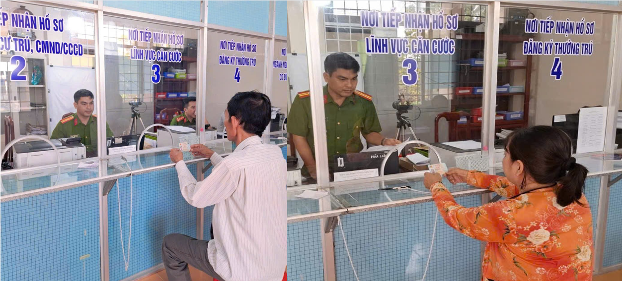 Cán bộ Công an xã Hỏa Lựu tiếp nhận hồ sơ cấp Căn cước cho người dân trong dịp tết Dương lịch.