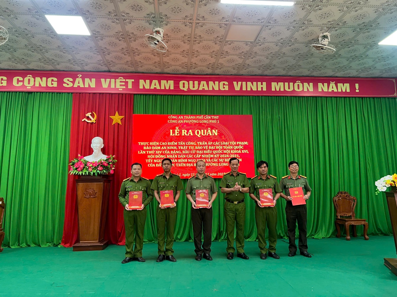 Thực hiện Kế hoạch của Giám đốc Công an thành phố Cần Thơ, trong các ngày từ 15/12 đến 19/12/2025, Công an các phường, xã trên địa bàn thành phố tiếp tục đồng loạt tổ chức Lễ ra quân thực hiện cao điểm tấn công, trấn áp tội phạm, bảo đảm an ninh, trật tự phục vụ Đại hội đại biểu toàn quốc lần thứ XIV của Đảng, bầu cử đại biểu Quốc hội khóa XVI, Hội đồng nhân dân các cấp nhiệm kỳ 2026 – 2031 và Tết Nguyên đán Bính Ngọ 2026. Hoạt động ra quân được triển khai nghiêm túc, đồng bộ, thể hiện quyết tâm chính trị cao và tinh thần chủ động của lực lượng Công an cơ sở trong công tác giữ gìn an ninh, trật tự.