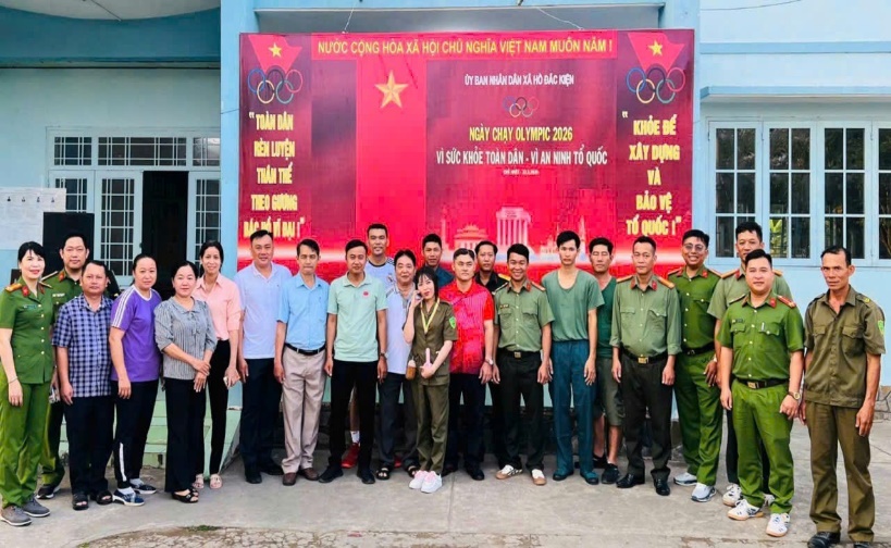 Tại xã Hồ Đắc Kiện, Công an xã đã phối hợp tổ chức chương trình với sự tham gia đông đảo của cán bộ, công chức, lực lượng vũ trang, đoàn viên thanh niên, học sinh và Nhân dân. Ngay sau lễ phát động, các đại biểu và Nhân dân đã tham gia chạy hưởng ứng trên các tuyến đường trung tâm, tạo không khí sôi nổi, lan tỏa tinh thần rèn luyện thể dục thể thao trong cộng đồng.