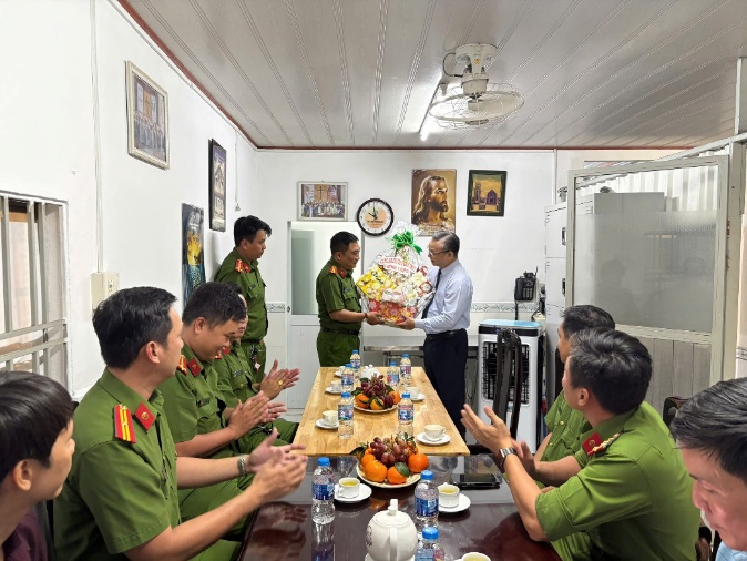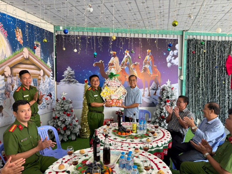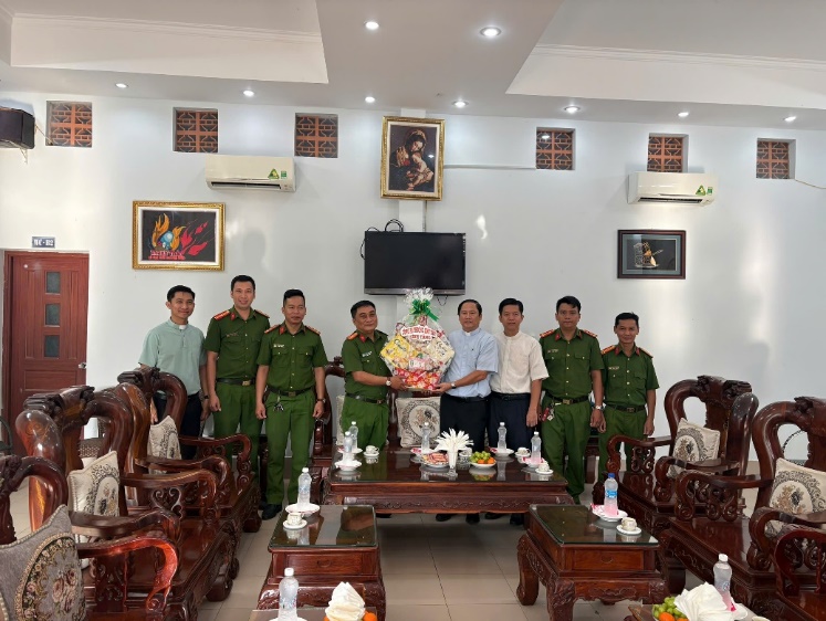 Đoàn công tác đã ân cần thăm hỏi, gửi lời chúc mừng Giáng sinh an lành, hạnh phúc tới các vị linh mục, Ban hành giáo và toàn thể bà con giáo dân. Đồng thời, bày tỏ trân trọng và cảm ơn sự đồng hành, phối hợp tích cực của các Giáo xứ trong công tác giữ gìn an ninh, trật tự và xây dựng đời sống văn hóa ở địa phương trong thời gian qua.