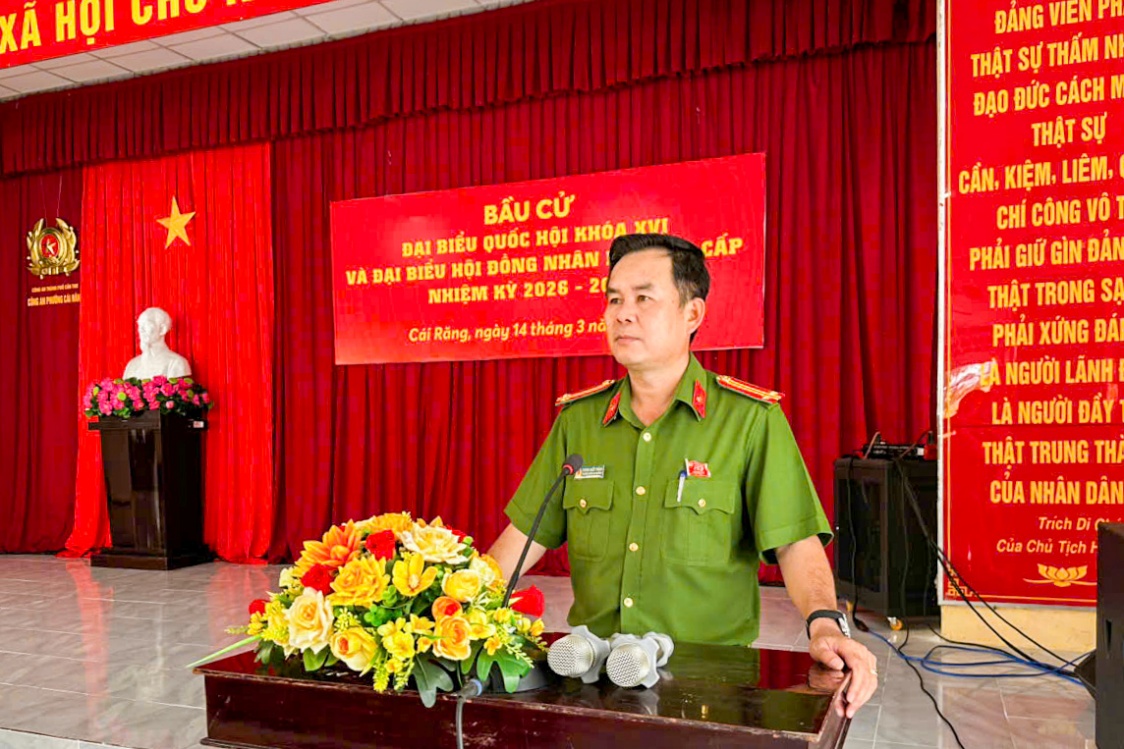 Quán triệt chỉ đạo của Đảng ủy, Ban Giám đốc Công an thành phố Cần Thơ và cấp ủy, chính quyền địa phương, tại Hội nghị triển khai phương án bảo đảm an ninh, trật tự bầu cử đại biểu Quốc hội khóa XVI và bầu cử đại biểu Hội đồng nhân dân các cấp nhiệm kỳ 2026 - 2031, Trung tá Dương Nhật Thành, Trưởng Công an phường Cái Răng yêu cầu cán bộ, chiến sĩ nêu cao tinh thần trách nhiệm, chủ động nắm chắc tình hình địa bàn, quản lý chặt các loại đối tượng; kịp thời phát hiện và xử lý các yếu tố phức tạp về an ninh, trật tự. Đồng thời, tăng cường tuần tra, kiểm soát, khép kín địa bàn; phối hợp chặt chẽ với các lực lượng liên quan bảo đảm an toàn tuyệt đối tại các khu vực bỏ phiếu; không để xảy ra các vụ việc đột xuất, bất ngờ, góp phần bảo vệ an toàn cho Ngày hội toàn dân trên địa bàn phường.