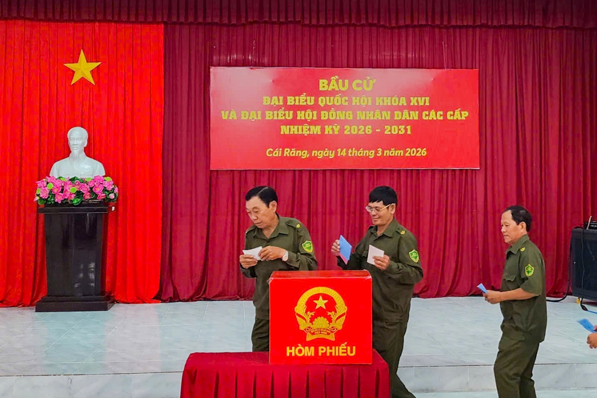 Sáng 14/3, Khu vực bỏ phiếu số 32 tại Công an phường Cái Răng, thành phố Cần Thơ đã tổ chức lễ khai mạc và tiến hành bỏ phiếu sớm bầu cử đại biểu Quốc hội khóa XVI và bầu cử đại biểu Hội đồng nhân dân các cấp nhiệm kỳ 2026 - 2031 đối với cán bộ, chiến sĩ Công an thành phố và lực lượng an ninh trật tự cơ sở trên địa bàn phường. Việc bỏ phiếu sớm được tổ chức nghiêm túc, đúng quy định, hoàn thành trong thời gian ngắn, tạo điều kiện để lực lượng nhanh chóng triển khai các phương án, sẵn sàng bảo đảm an ninh, trật tự phục vụ Ngày bầu cử trên địa bàn.