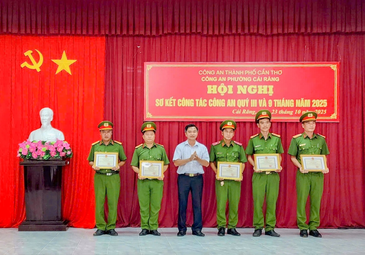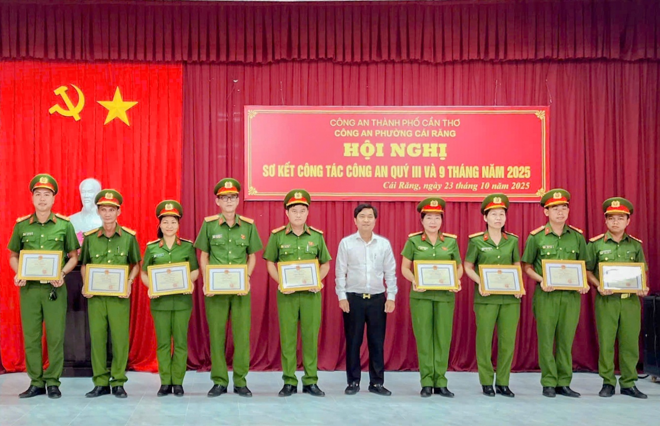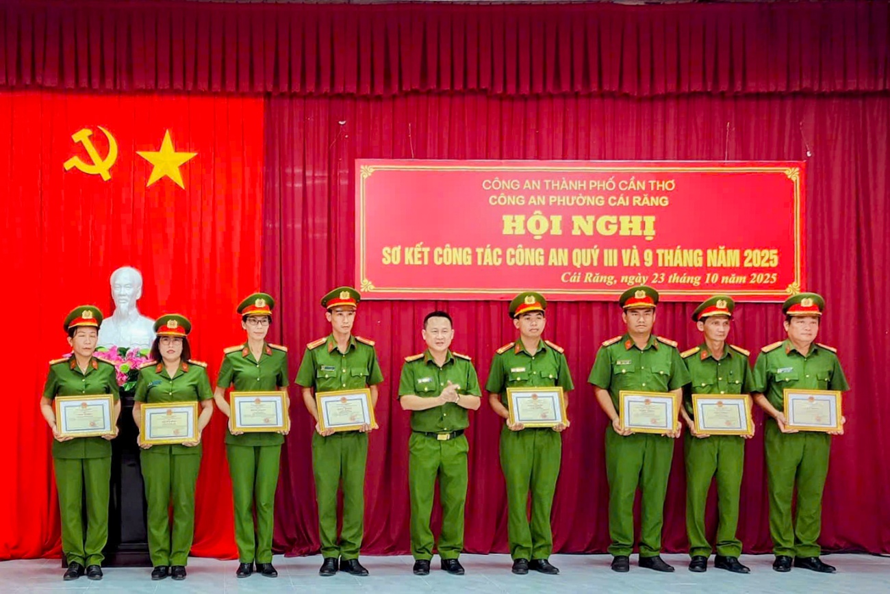 Tại hội nghị, Chủ tịch UBND phường Cái Răng đã tặng giấy khen cho các tập thể và cá nhân có thành tích xuất sắc trong công tác bảo đảm an ninh, trật tự quý III và 9 tháng đầu năm 2025, cũng như trong cao điểm tấn công, trấn áp tội phạm, bảo đảm an ninh, trật tự trong các ngày lễ lớn và Đại hội Đảng bộ các cấp.Những phần thưởng được trao là sự ghi nhận xứng đáng cho tinh thần trách nhiệm, sự nỗ lực, cống hiến của cán bộ, chiến sĩ Công an phường; đồng thời là nguồn động viên, cổ vũ to lớn để toàn đơn vị tiếp tục phấn đấu, hoàn thành xuất sắc nhiệm vụ trong thời gian tới. Hội nghị sơ kết quý III năm 2025 của Công an phường Cái Răng là dịp đánh giá toàn diện kết quả các mặt công tác trong quý III và 9 tháng đầu năm, đồng thời xác định rõ nhiệm vụ, giải pháp trọng tâm nhằm hoàn thành các chỉ tiêu công tác năm 2025 trong những tháng cuối năm, không để phát sinh phức tạp mới trên địa bàn. Đây cũng là dịp để củng cố tinh thần đoàn kết, thống nhất, khẳng định bản lĩnh, ý chí của tập thể Công an phường trong giai đoạn mới. Với tinh thần “Chủ động - Kỷ cương - Nêu gương - Trách nhiệm - Hiệu quả”, Công an phường Cái Răng quyết tâm hoàn thành xuất sắc nhiệm vụ, góp phần xây dựng “thế trận lòng dân” vững chắc, giữ vững bình yên cho Nhân dân./.
