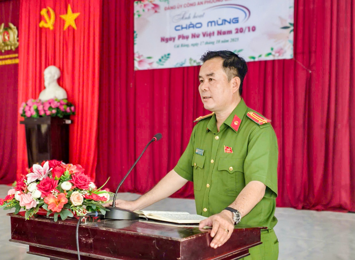 Phát biểu tại buổi họp mặt, Trung tá Dương Nhật Thành, Bí thư Đảng ủy, Trưởng Công an phường Cái Răng ghi nhận và biểu dương tinh thần trách nhiệm, sự nỗ lực và cống hiến không ngừng của các nữ cán bộ, chiến sĩ và nữ lực lượng an ninh trật tự cơ sở trong thời gian qua. Dù đảm đương nhiều vai trò trong công việc và cuộc sống, nhưng các chị em luôn giữ vững phẩm chất người chiến sĩ Công an nhân dân - “Bản lĩnh, nhân văn, vì Nhân dân phục vụ”, góp phần xây dựng hình ảnh đẹp về người phụ nữ trong lực lượng Công an - kiên cường, trách nhiệm nhưng cũng đầy dịu dàng, nhân hậu.