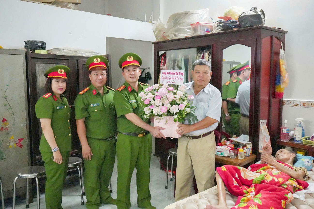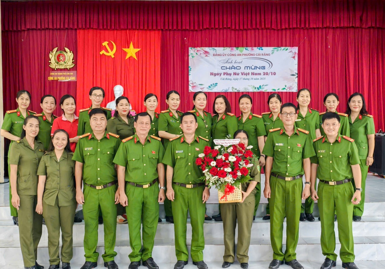 Nhân kỷ niệm 95 năm Ngày Phụ nữ Việt Nam (20/10/1930 - 20/10/2025), ngày 17/10, Công an phường Cái Răng đã tổ chức buổi họp mặt thân mật, tặng hoa và những phần quà chúc mừng các nữ cán bộ, chiến sĩ, lao động hợp đồng Công an phường và nữ lực lượng an ninh trật tự cơ sở trên địa bàn; đồng thời đã đến thăm, tặng quà các Mẹ Việt Nam Anh hùng và gia đình ba cháu nhỏ trong Chương trình “Mẹ đỡ đầu” do đơn vị nhận bảo trợ.