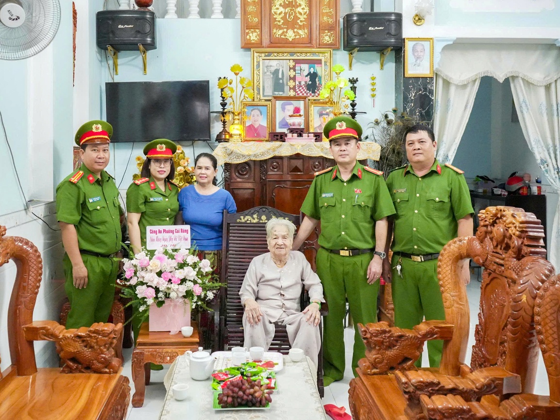 Chiều cùng ngày, Công an phường Cái Răng tổ chức đoàn do Trung tá Dương Nhật Thành, Bí thư Đảng ủy, Trưởng Công an phường Cái Răng dẫn đầu đã đến thăm và tặng quà các Mẹ Việt Nam anh hùng cùng gia đình ba cháu nhỏ trong Chương trình “Mẹ đỡ đầu” do đơn vị nhận bảo trợ.