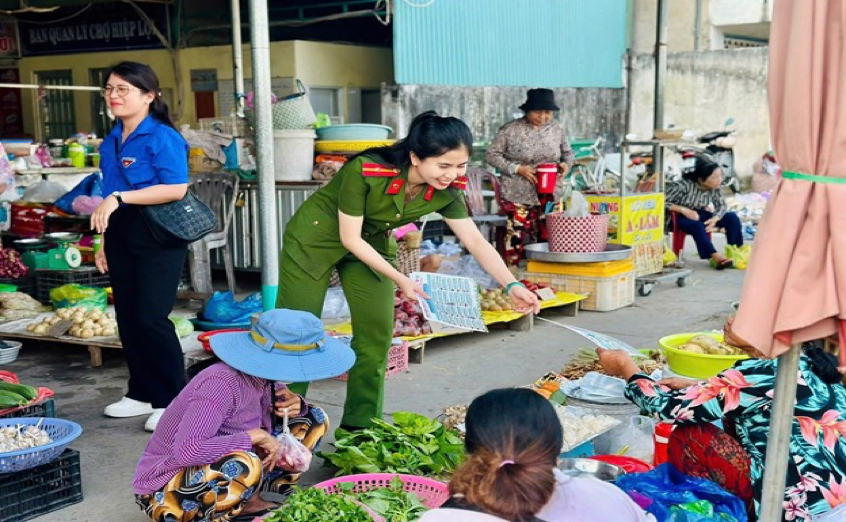 Ảnh: Tuyên truyền PCCC tại khu chợ Tân Thành