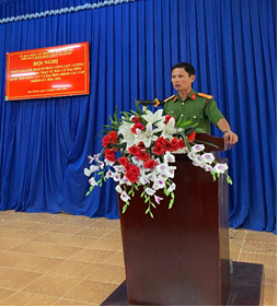 Ảnh 1. Đồng chí Trung tá Nguyễn Hồng Vinh, Trưởng Công an phường, Trưởng Tiểu ban đảm bảo ANTT và ATXH triển khai Phương án và Kế hoạch phân công lực lượng đảm bảo ANTT cuộc bầu cử.