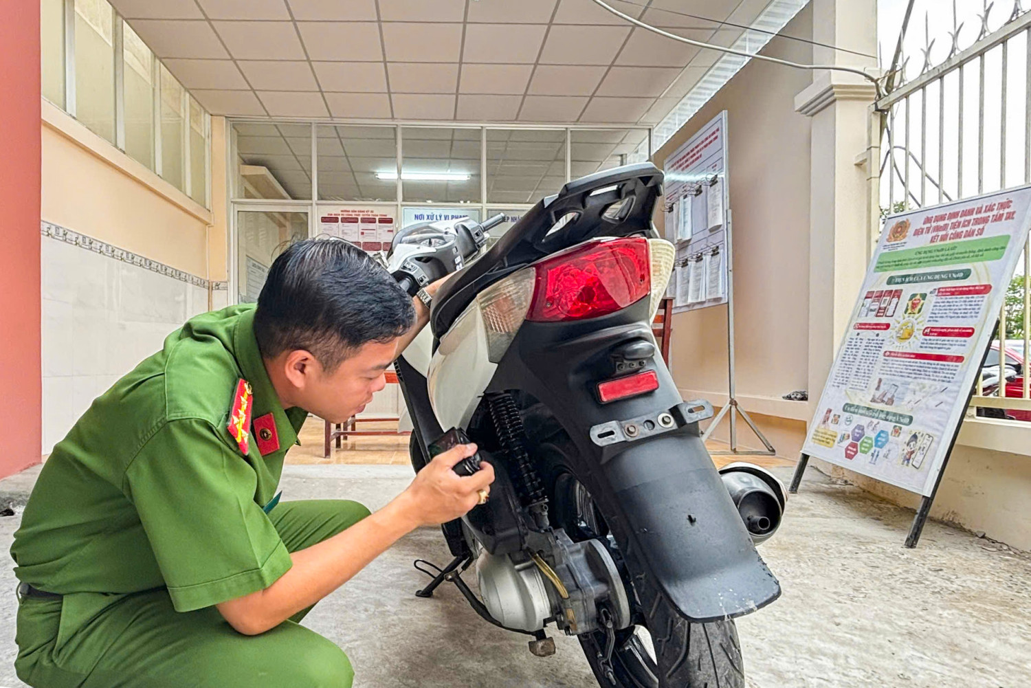 Cán bộ Công an phường Hưng Phú kiểm tra, chụp ảnh phương tiện phục vụ công tác đăng ký xe