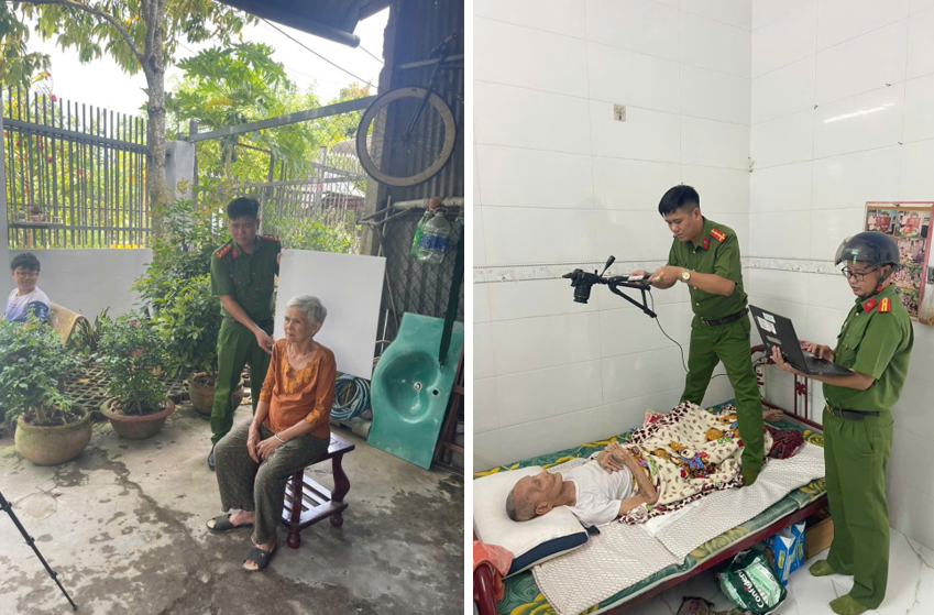 Cán bộ, chiến sỹ Công an phường đến tận nhà cấp Căn cước cho người già yếu hạn chế đi lại