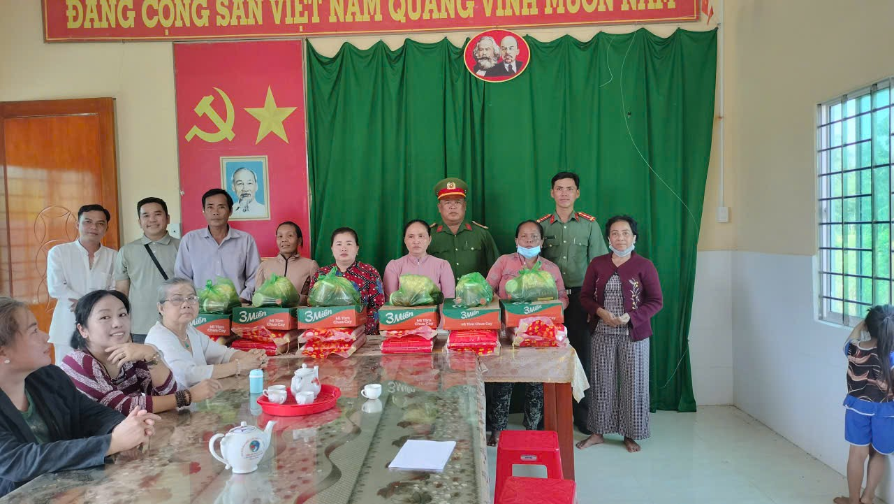 Cán bộ, chiến sĩ tổ Cảnh sát khu vực cùng Chi đoàn, Hội Phụ nữ Công an phường Thới An Đông trao quà trực tiếp tại nhà cho trẻ mồ côi và học sinh bị tai nạn giao thông trên địa bàn.