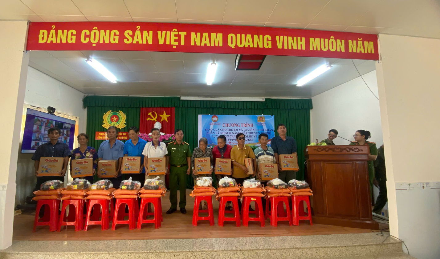 Tại Công an phường Thới An Đông, nhân kỷ niệm 80 năm Ngày truyền thống lực lượng Cảnh sát quản lý hành chính về trật tự xã hội (18/4/1946 - 18/4/2026), Công an phường đã phối hợp với Ủy ban MTTQ Việt Nam phường và các mạnh thường quân tổ chức trao 35 phần quà gồm gạo, mì và nhu yếu phẩm, tổng trị giá hơn 20 triệu đồng cho người cao tuổi, trẻ em mồ côi và hộ gia đình khó khăn tại 16 khu vực trong phường.