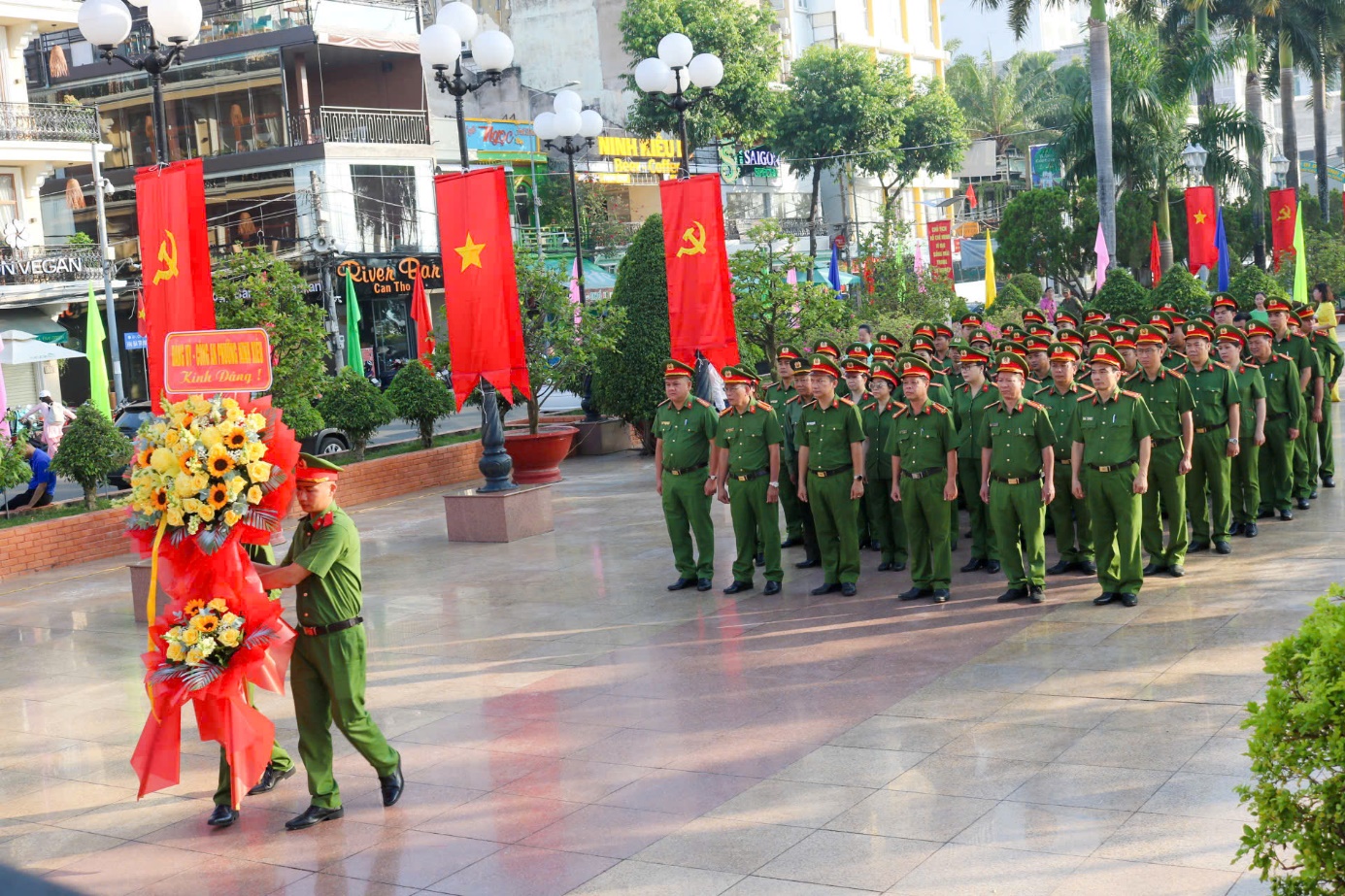 Ảnh: Quang cảnh CBCS Công an phường Ninh Kiều dâng hương, dâng hoa tưởng niệm Chủ tịch Hồ Chí Minh tại Công viên Ninh Kiều