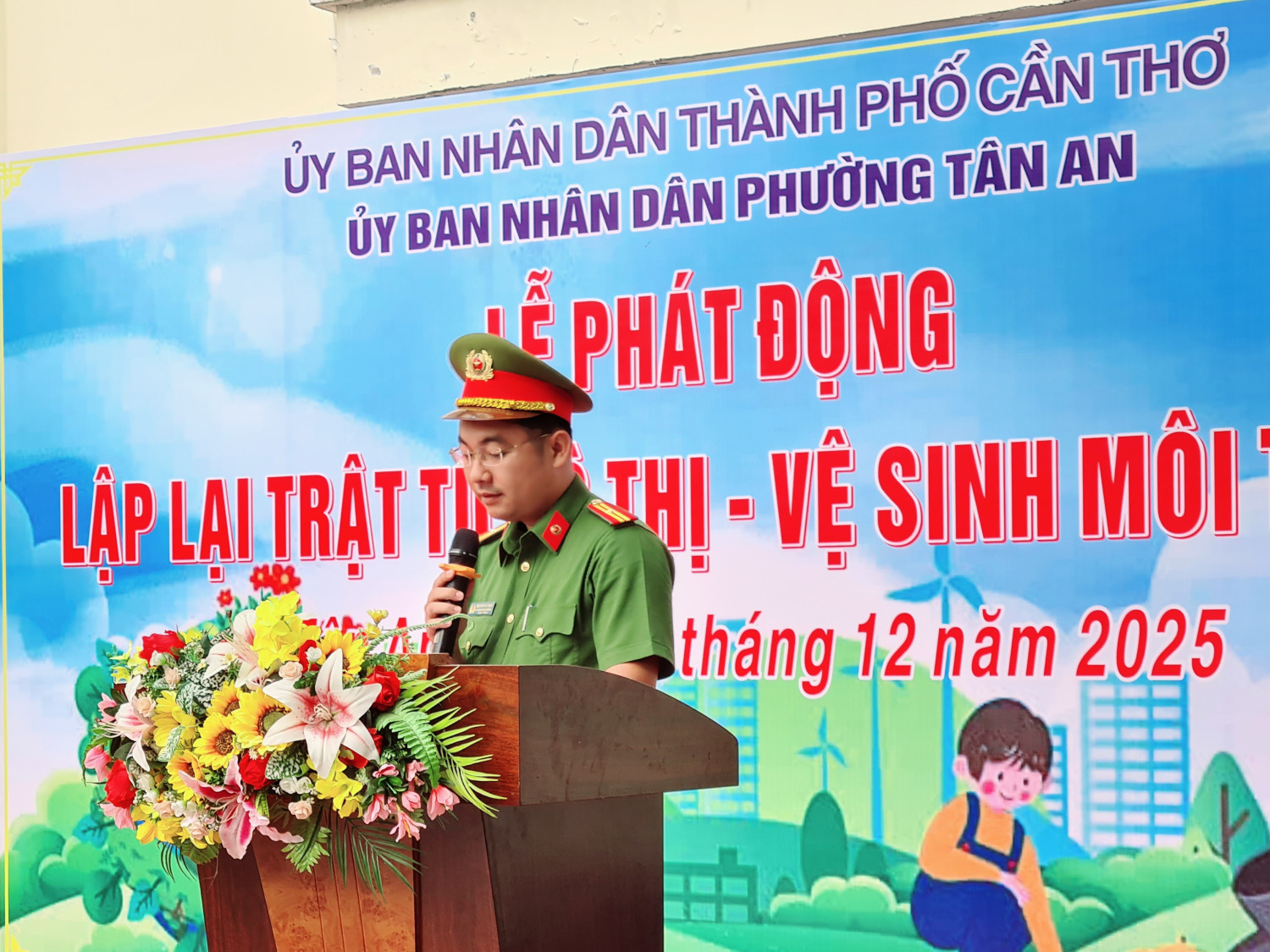 Ngày 27/12/2025, Công an phường Tân An, thành phố Cần Thơ tham gia Lễ phát động lập lại trật tự đô thị, vệ sinh môi trường trên địa bàn phường Tân An năm 2025 do Ủy ban nhân dân phường Tân An tổ chức, nhằm tăng cường chỉnh trang đô thị, bảo đảm mỹ quan, trật tự an toàn giao thông và vệ sinh môi trường, thiết thực chào mừng Đại hội đại biểu toàn quốc lần thứ XIV của Đảng