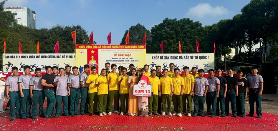 Ảnh: Đoàn thi đấu Cụm 13 (lực lượng Công an và Quân sự phường) quyết tâm đạt thành tích cao trong Đại hội Thể dục thể thao lần thứ X năm 2026 phường Ninh Kiều