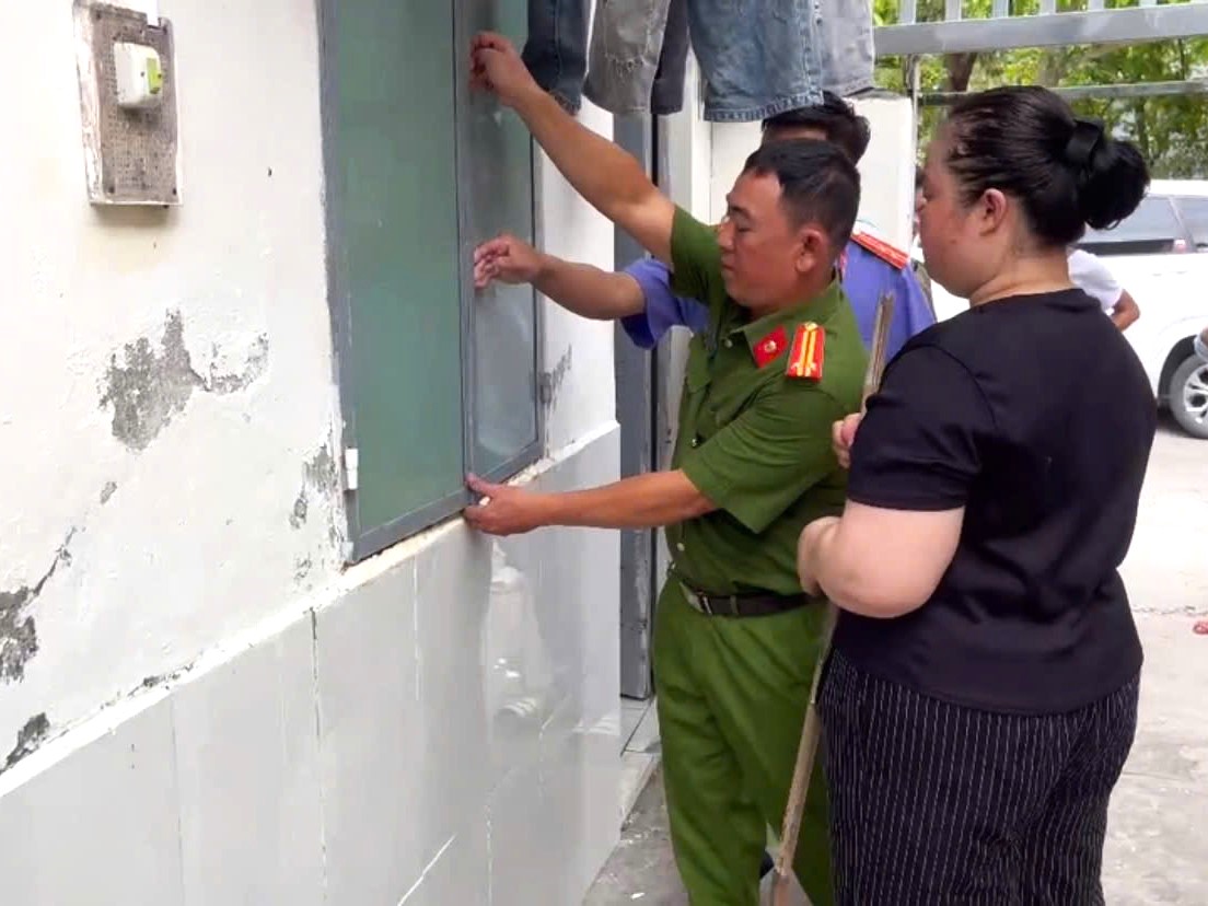 Công an phường tiến hành dẫn giải đối tượng Nguyễn Thị Thu Hồng đến hiện trường để làm rõ hành vi trộm cắp tài sản