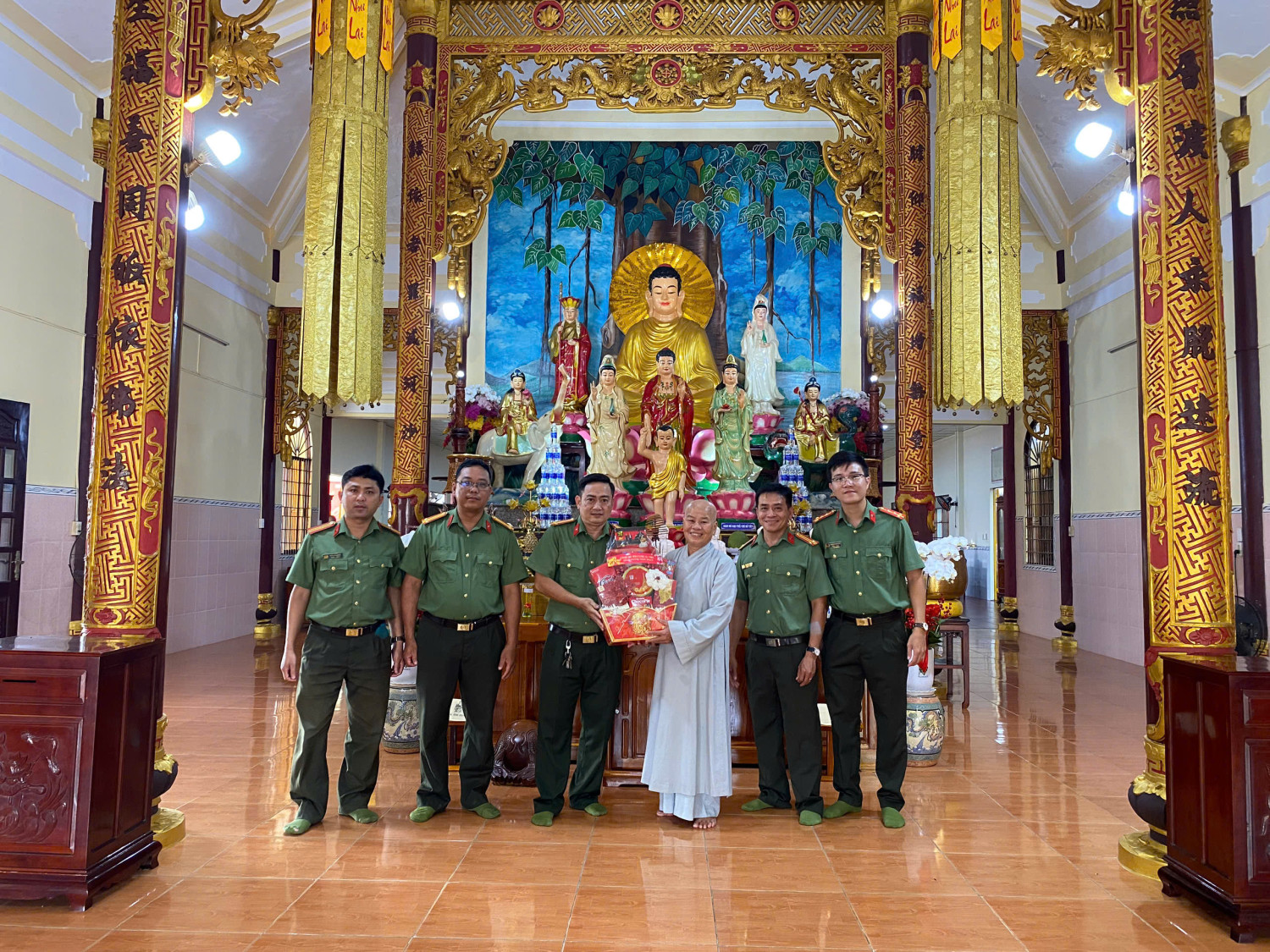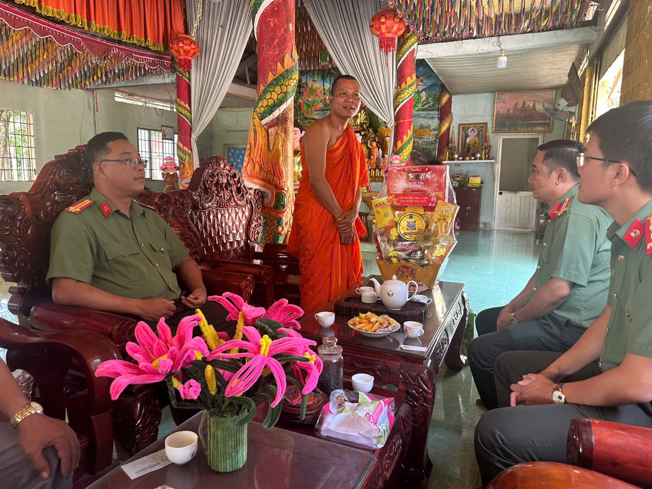 Đoàn công tác Công an phường Vị Tân thăm, chúc Tết tại Chùa Sasanacrangsay