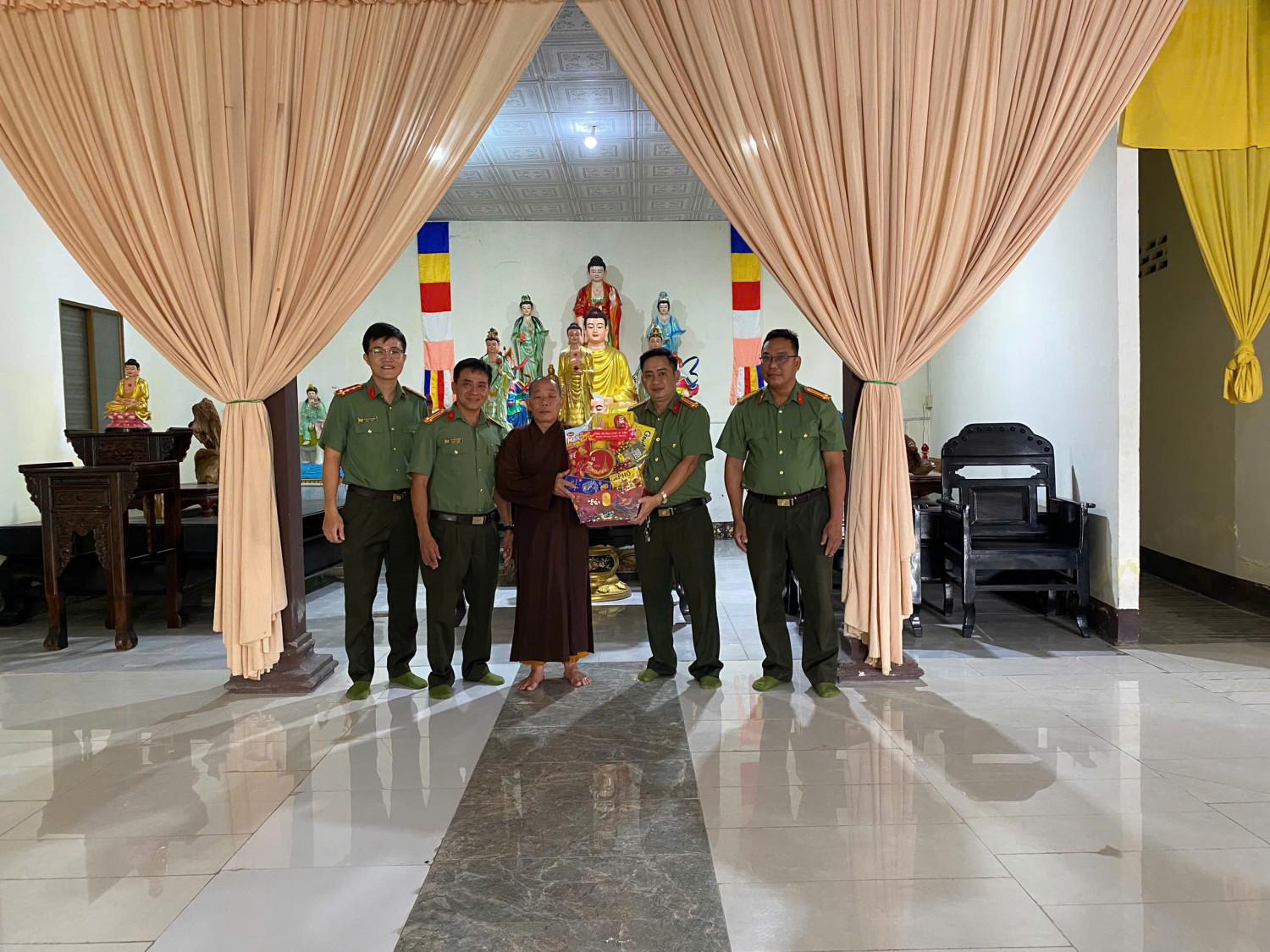 Đoàn công tác Công an phường Vị Tân thăm, chúc Tết tại Chùa Phước Huệ